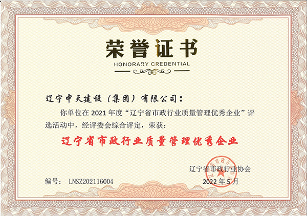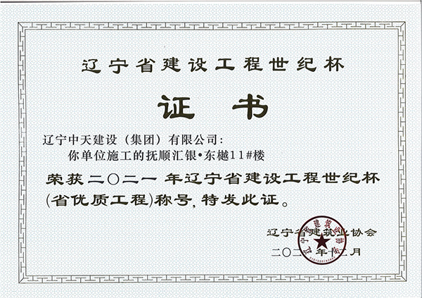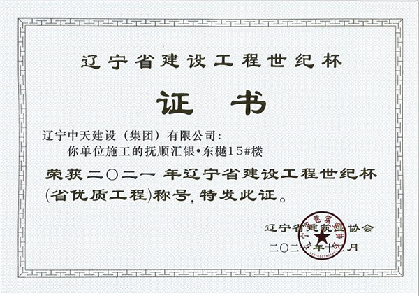 遼寧中天建設(shè)集團(tuán)領(lǐng)導(dǎo)班子認(rèn)真貫徹落實(shí)科學(xué)發(fā)展觀,堅(jiān)持以人為本,積極培育“開拓進(jìn)取,求新向上,求真務(wù)實(shí),團(tuán)結(jié)奉獻(xiàn)”的企業(yè)精神和“干一項(xiàng)工程交一方朋友,占一方市場(chǎng),樹一座豐碑”的經(jīng)營(yíng)理念。經(jīng)過遼寧中天建設(shè)者的辛勤耕耘,許多建筑精品工程象一座座豐碑聳立在撫順大地上,令人矚目。撫順市保障性住房建設(shè)工程榮獲全國(guó)優(yōu)質(zhì)工程金獎(jiǎng),撫順移動(dòng)通訊綜合樓、撫順市電信綜合樓、撫順市三寶屯污水處理廠擴(kuò)建及中水回用工程等多項(xiàng)工程獲得“遼寧省世紀(jì)杯工程”、“遼寧市政金杯”工程等殊榮。公司還多次榮獲“省建筑業(yè)質(zhì)量管理先進(jìn)施工企業(yè)”稱號(hào)。